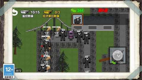 2、游戏界面左上角实时显示当前监控单位数量与经济资源,敌方单位出现时会有提示,其生命值通过顶部血条呈现。