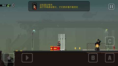 2、左下角是控制角色前进和后退的按键,我们按照指引往前探索,在道路塌方处点击【A】就可以跨过去。