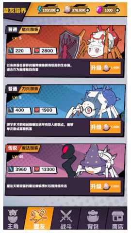 通关后玩家可获得的各种资源可用于“盟友”中升级伙伴的属性,更好的帮助玩家探险