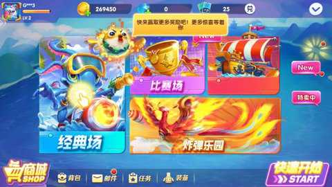 主副炮独立控制:主炮主攻高倍鱼,副炮扫射群鱼;支持一键切换弹道模式,硬核玩家也能打出战术连招!