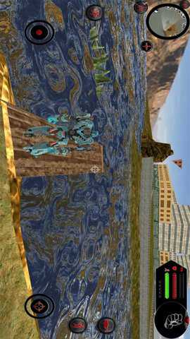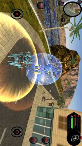 靠近石墙后,点击右侧那个带有人形图标的变形按钮,先变形成鱼类形态,游过前方的障碍,之后再切换回机器人形态,翻越这堵石墙。