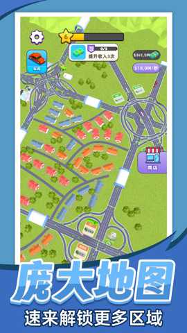 5、道路规划,建造商铺,开发新城区,移动你的手指来绘制道路,发挥你的聪明才智规划交通,提高城市车辆的通行效率,建造属于你自己的虚拟城市。