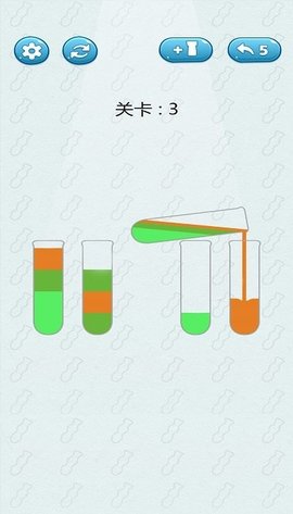 4.关卡的提升也会增加更多的难度,这里的液体之间还有颜色的区分。