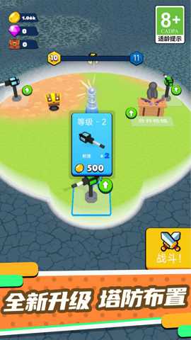 4、敌人从四面八方前来,为了升级铁塔,生命值不断的上升。