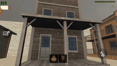 2、第一人称视角穿梭在沙漠中,寻找武器和敌人展开对战。