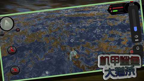 1、通过虚拟摇杆控制机械鲨鱼游动,滑动视角观察周围环境,利用水流暗流加速或隐藏于残骸阴影中规避探测。