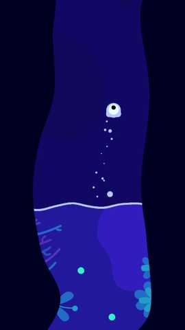 2、完成瞄准后,控制大眼角色跳到小球上,接着一步步往水面方向移动,顺利到达水面就能赢得关卡胜利。