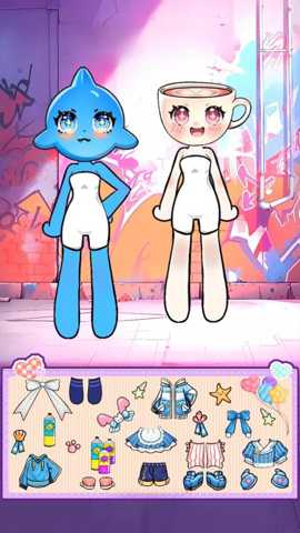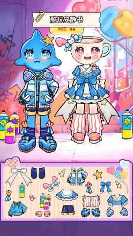 2、从底部【贴纸栏】选取心仪贴纸,拖拽至对应角色身上,逐步完成装扮。