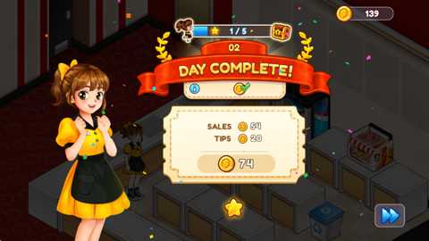 4、当所有顾客的订单都顺利完成后,便能成功通关并解锁下一天的新挑战;
