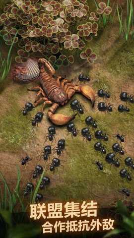 1. 策略经营玩法:玩家需合理分配资源,建造巢穴、训练兵种,制定独特的生存策略,每一步决策都关乎蚁国的兴衰。