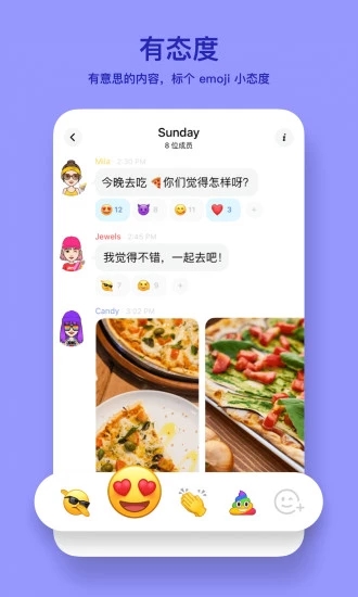进入聊天界面输入文字发送,点击表情图标可选择丰富的动态表情或贴纸。
