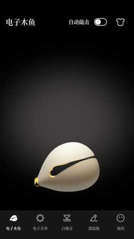 在电子木鱼的界面上,衣服图标既能进入换肤设置页面,也可以开启自动敲击功能,使木鱼自动发出声响,从而帮助用户放松心情。