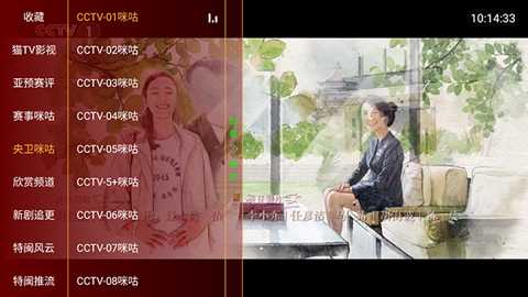 2、点击左侧屏幕可以显示频道列表。
