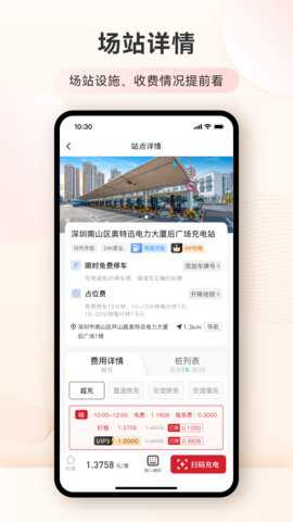 3、查看电站详情,了解电站地址、费用和电桩情况,即可一键扫码充电;