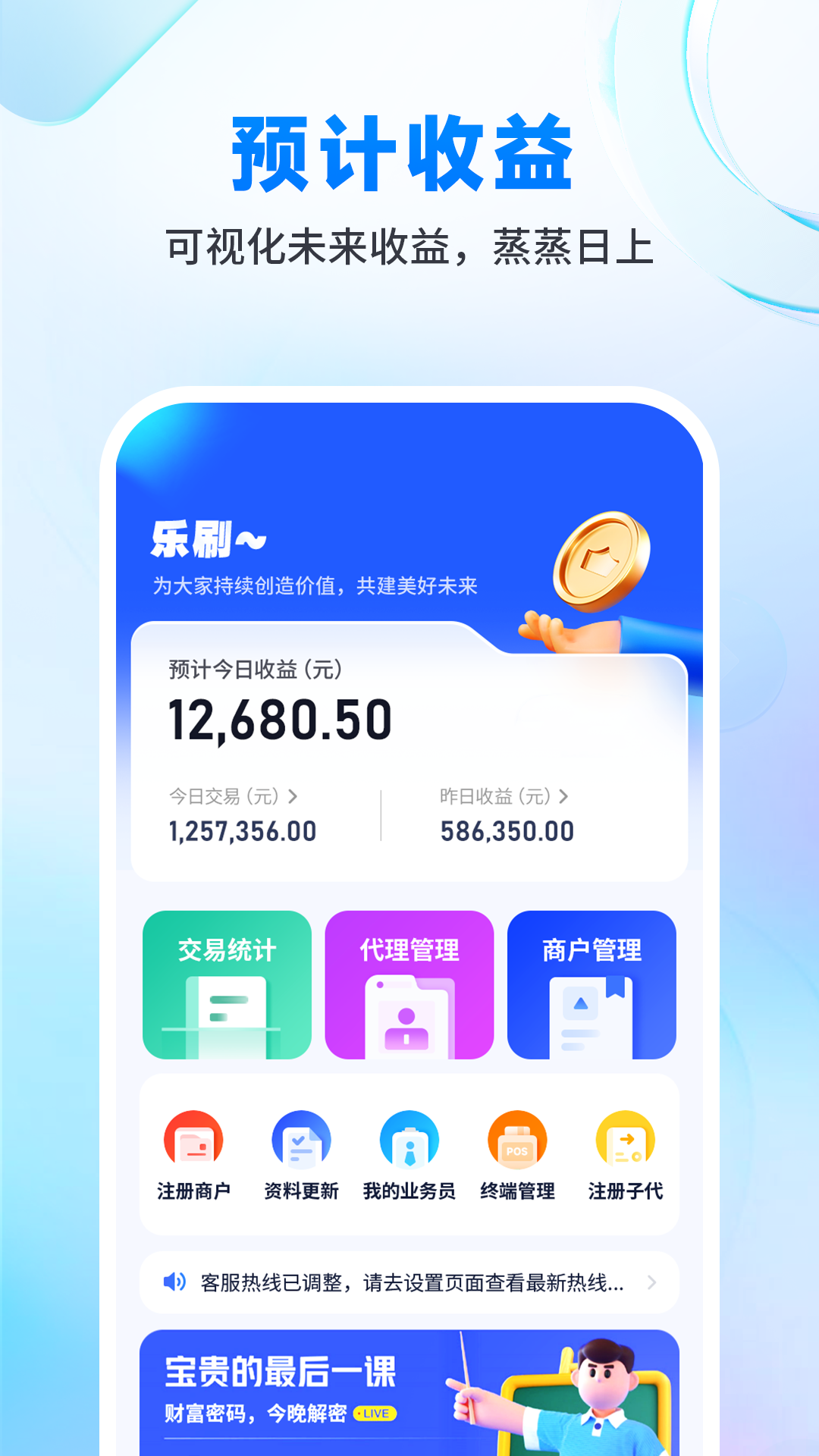 乐刷渠道版App是一款专为商户打造的聚合支付工具,支持多码合一收款、实时到账、多样化结算方式及本地化运营服务,助您轻松拓展线下生意,提升资金流转效率。立即下载,开启高效收款新体验!