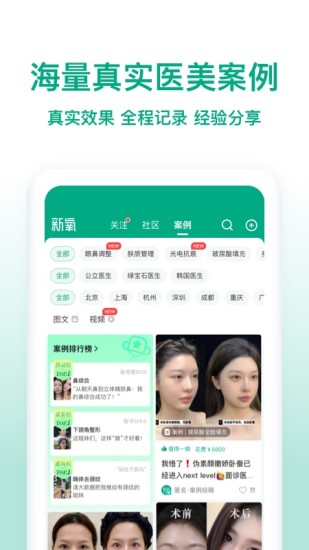 5. 社区真实分享:接入百万用户经验贴与术前术后对比图,AI去敏处理隐私信息,可按项目/城市/效果标签精准浏览。