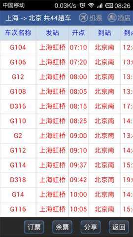 2、在结果展示界面,点击出现的结果页面,然后将会打开详细的车次信息。