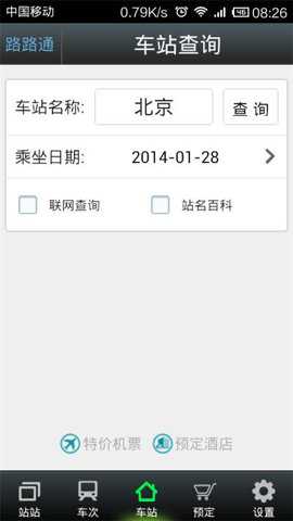 1、首先,请大家下载并安装应用,然后点击进入路路通应用主界面,然后输入你的始发站和终点站,选择好出发日期之后,最后点击“查询”。