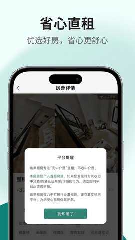 唯果租房是一款专注于品质租住生活的智能租房平台,致力于为都市青年与家庭提供安全、透明、高性价比的房源选择。我们严选真实房源,0中介费直租模式,搭配智能匹配与全程管家服务,让找房更简单、租住更安心。立即下载唯果租房App,开启你的理想租居之旅!