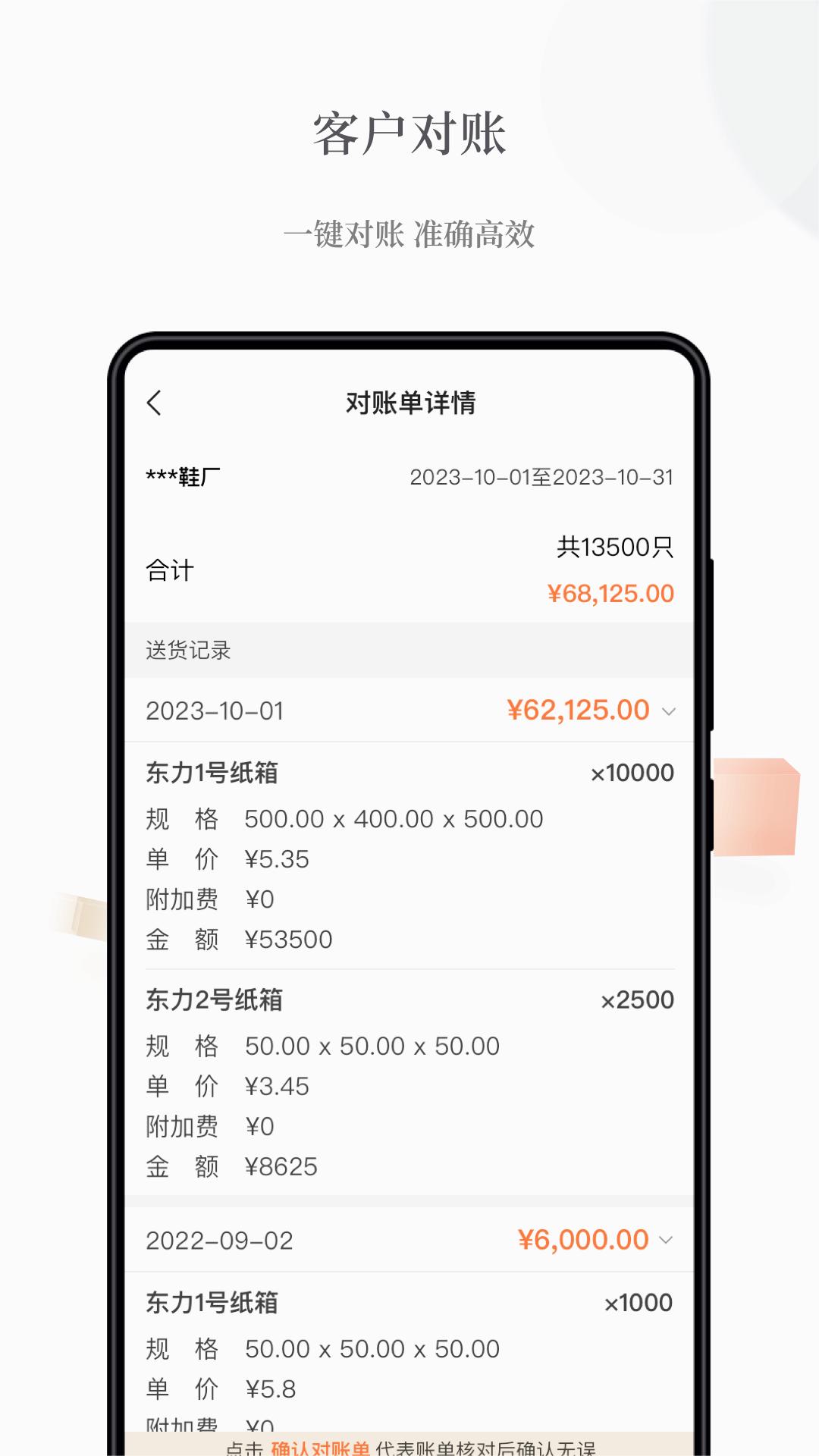 用户痛点:月底翻阅纸质单据,人工对账操作繁琐,计算易失误,错账、漏账多发;