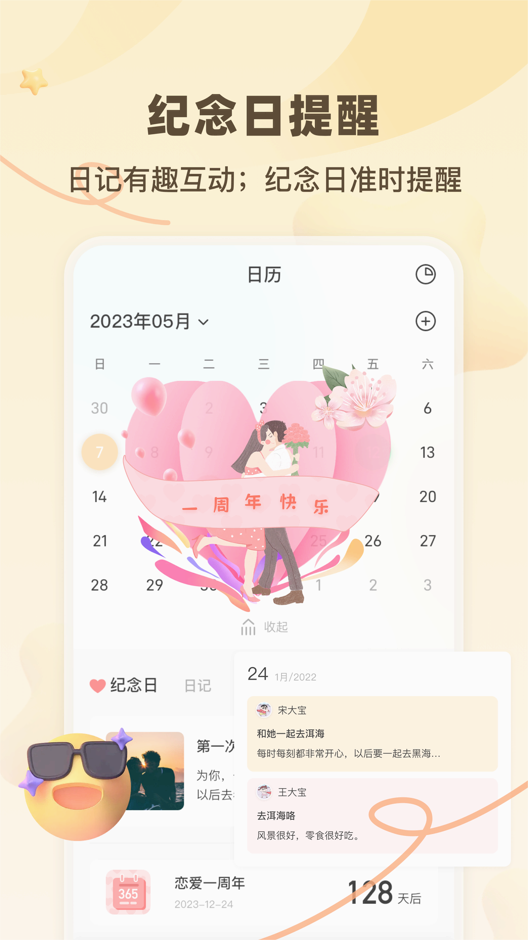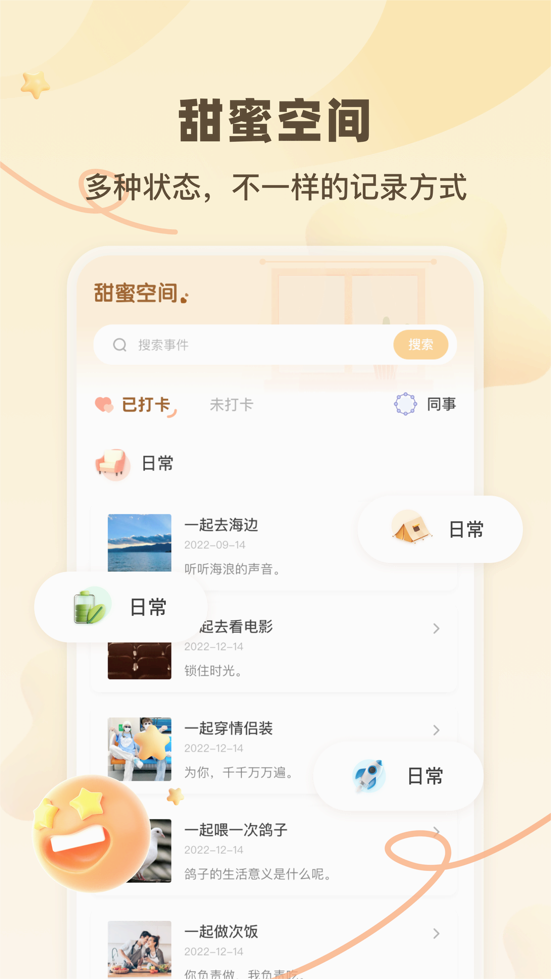 4、和你的知己一起做喜欢做的事情,如果不喜欢该事件,还能直接删除,并且自定义